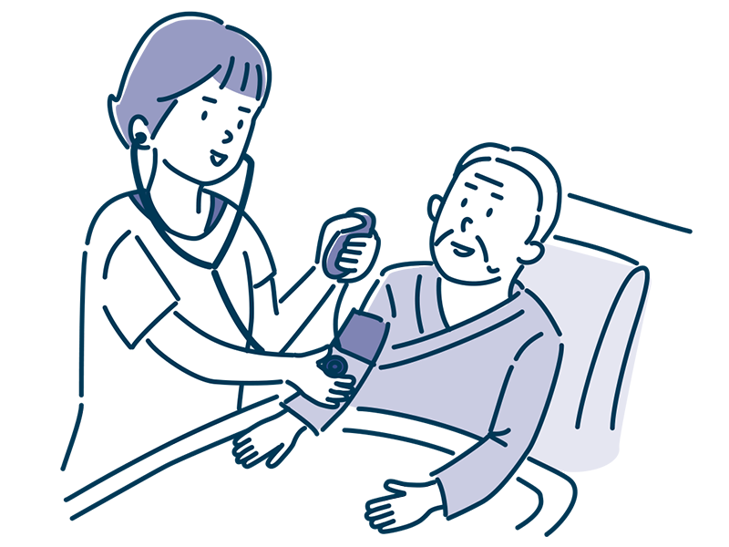 医師の指示に基づき、自宅で療養する患者さんのもとへ訪問し、ケアやリハビリテーション、健康管理などを行います。